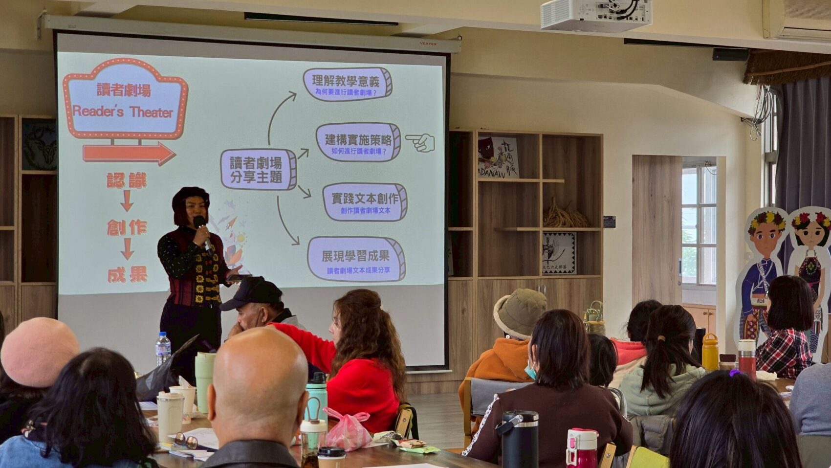 同時交流原住民族語讀者劇場的教學訓練與文本創作經驗。